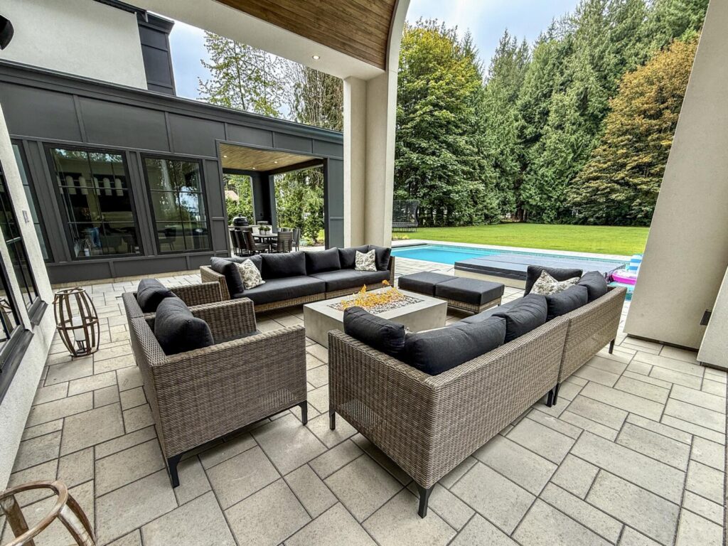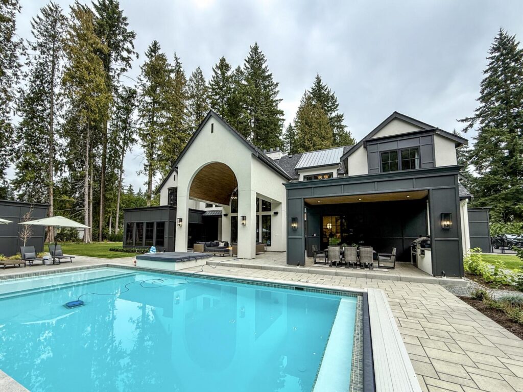 Located in Langley’s Salmon River neighbourhood, this brand-new executive home sits on 5 acres of private, forested land. Spanning 5,600 sq. ft. across two levels, the residence features an open-concept layout with a gourmet kitchen, an indoor gym, and a spacious entertainment room with a pool table and bar. Outdoor highlights include a 20×40 concrete pool with a matching tile hot tub and multiple outbuildings.